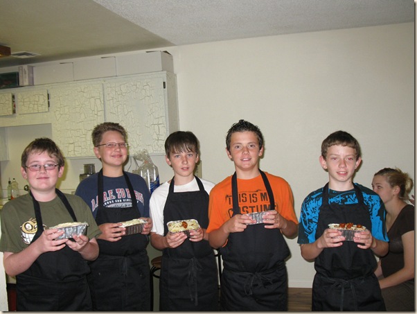 Once everyone arrived the boys were asked to put on some aprons and make some lasagnas for lunch.